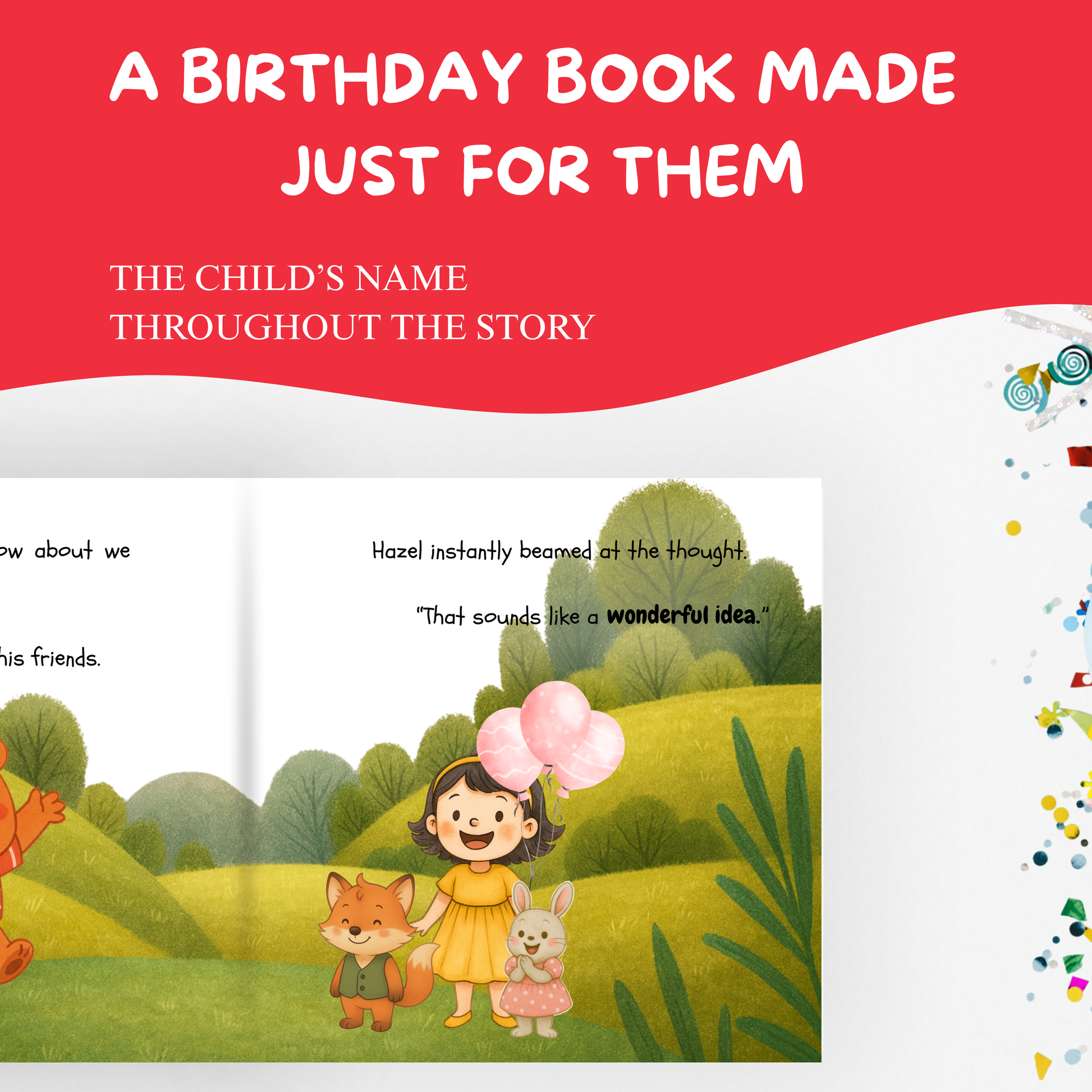 In this beautifully personalized story, your child becomes the star of their very own birthday celebration — joined by a charming cast of animal friends. With their name woven lovingly through the story, this is a birthday memory they’ll treasure forever.